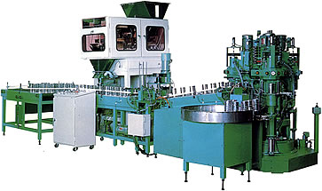 空缶供給機・自動計量詰機・自動仮締機・自動供給装置・排出装置・日付打機・製品集納テーブル